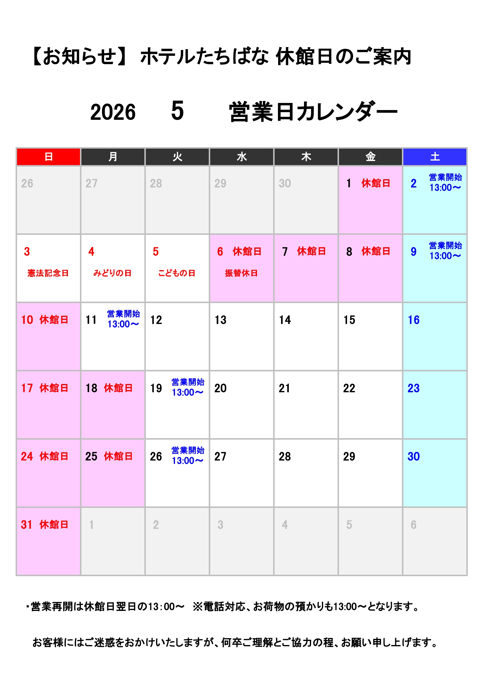 2026年5月 ホテルたちばな休業日案内_000001